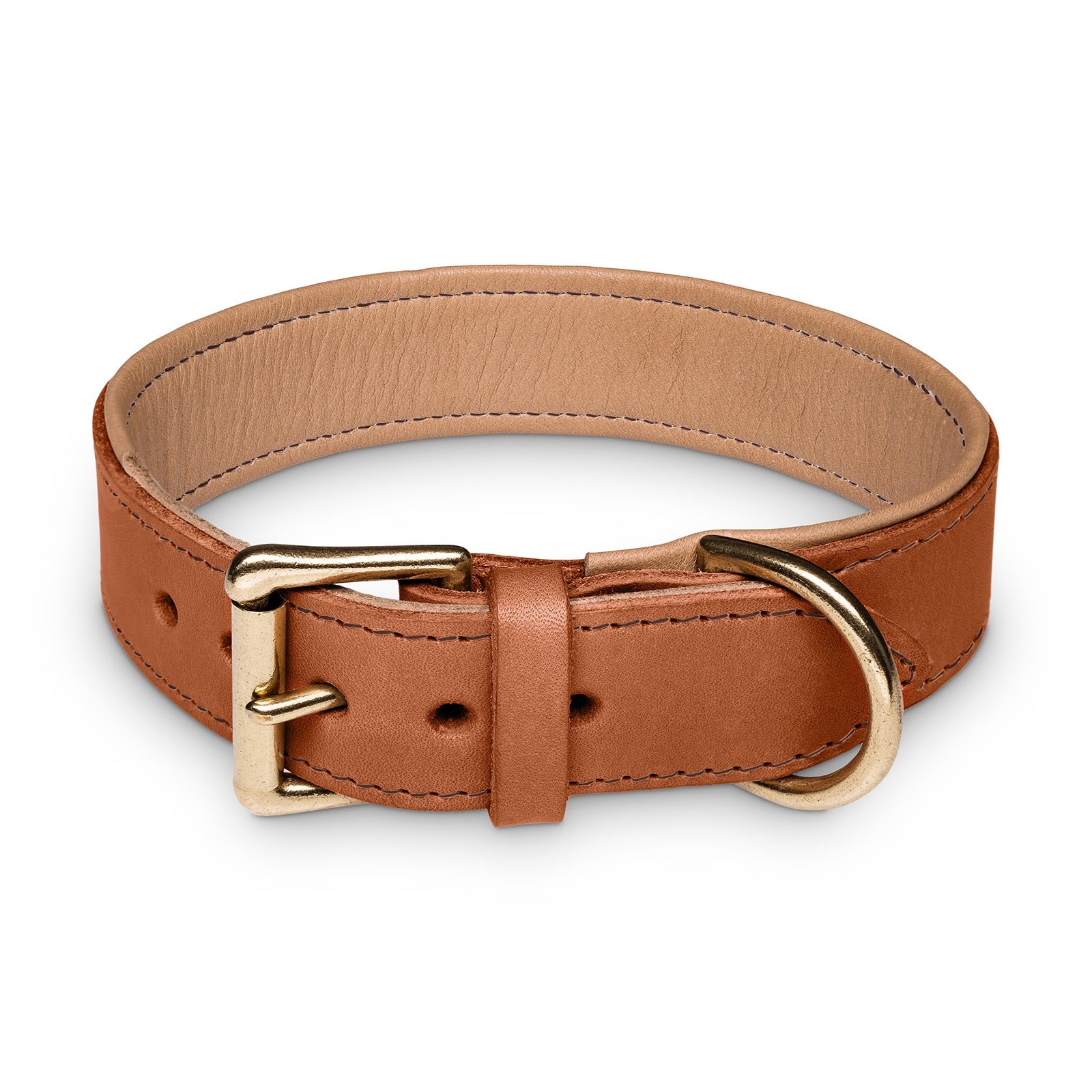 Unsere Halsbänder bestehen aus einem stabilen pflanzlich gegerbtem Oberleder vom Rind oder Büffel und einem weicheren Futterleder. Beides kann farblich nach eigenem Geschmack kombiniert werden. Dazu kommen die verschiedenen Farben der Nähte. Abgerundet wird das persönliche Halsband durch Metallteile aus Messing oder Chrom.